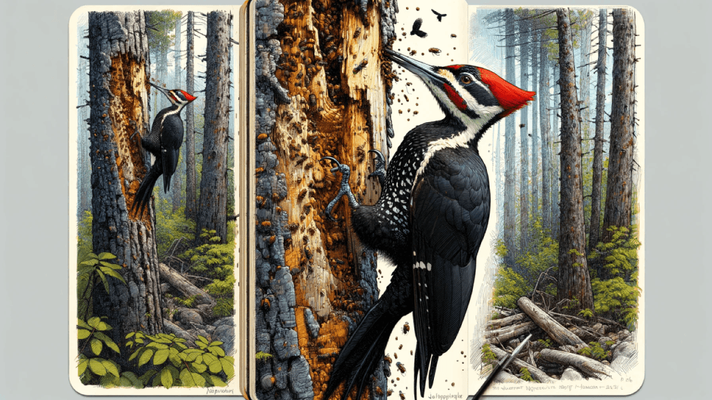 The feeding habits of the Pileated Woodpecker illustrate their crucial role in the ecosystem as both predator and scavenger and highlight their remarkable adaptability and resilience. By understanding and appreciating these behaviors, we gain insight into the complex web of life that thrives in our forests and the vital role that these majestic birds play within them.