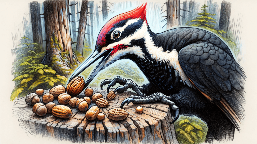 The Pileated Woodpecker, with its appetite for destruction, is not just a hunter of insects but also a connoisseur of the forest’s bounty. While their diet primarily consists of ants and wood-boring insects, these birds have a varied palate that includes a wide range of fruits and nuts, showcasing their ability to adapt to the seasonal offerings of their habitat.