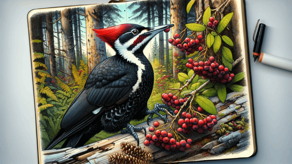 Beyond insects, Pileated Woodpeckers have a sweet spot for fruits. They feast on wild berries, including serviceberries, blackberries, and huckleberries. The fall season often sees them diversifying their diet with these sugary treats, which offer a vital energy source as the temperature drops and insects become scarcer.