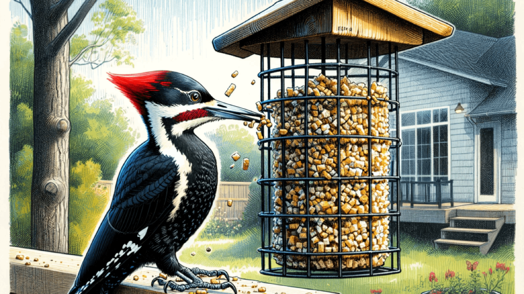 For bird enthusiasts looking to attract Pileated Woodpeckers to their backyards, suet feeders can be an excellent choice. Being rich in fat, Suet mimics the high-caloric diet these birds pursue in the wild. It’s particularly appealing in the winter, offering a reliable food source when insects and fruits are hard to come by.