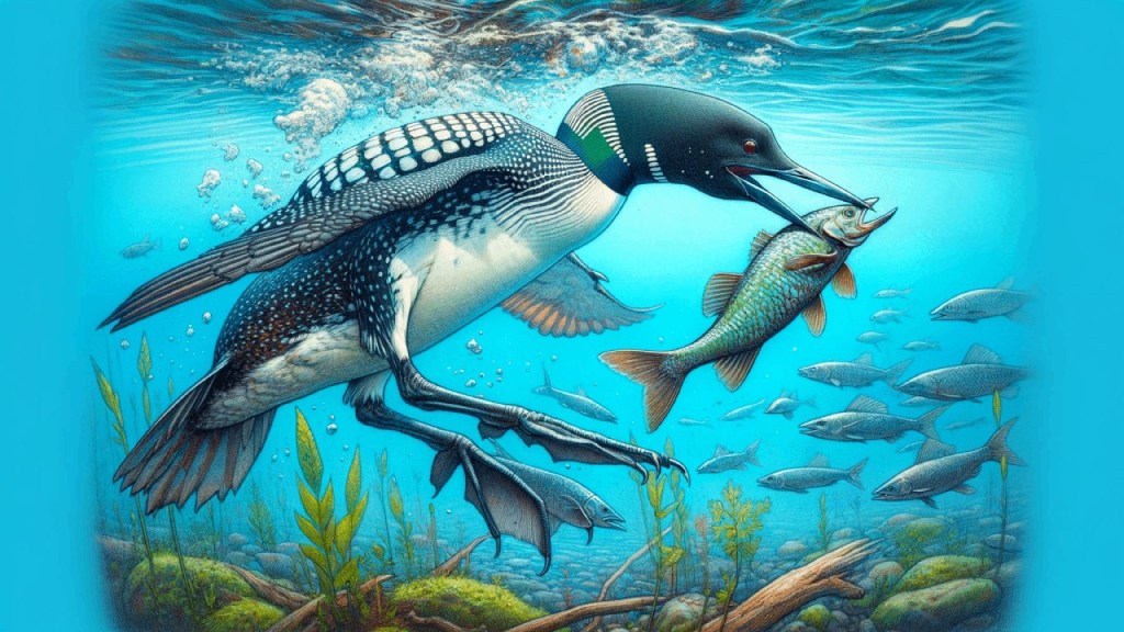 The diet of the Common Loon is as varied as the lakes and waterways it calls home. These birds are adept hunters, diving deep into the water to catch a wide range of prey. Their preference for certain foods speaks to their dietary needs and the rich biodiversity of their habitats. Here’s a closer look at the gourmet spread beneath the waves that the Common Loon enjoys.