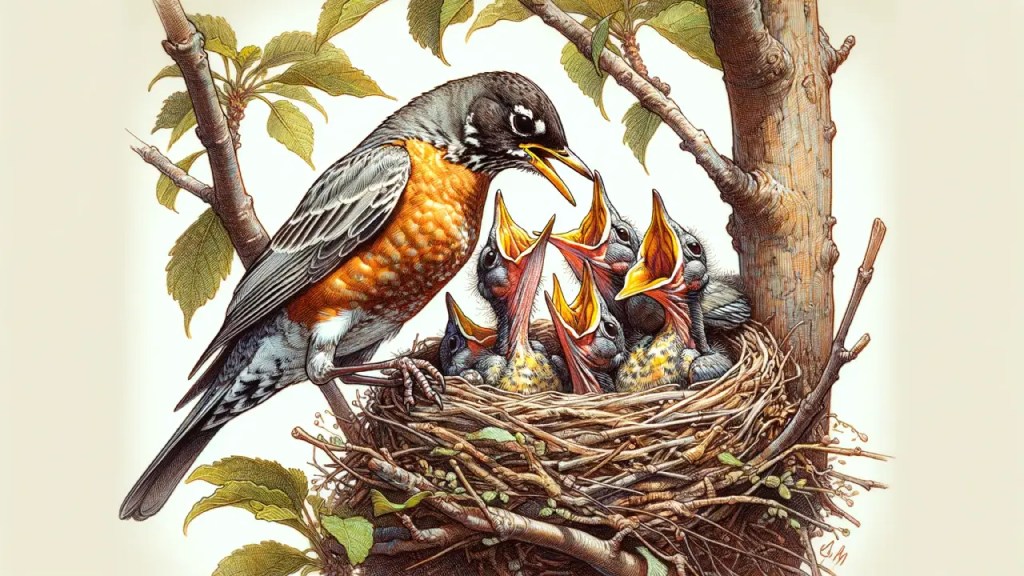 Once hatched, robin chicks are altricial, meaning they are born blind and featherless, requiring significant parental care. Both parents feed the chicks a diet rich in insects and worms, facilitating rapid growth. After about two weeks, the fledglings leave the nest, yet they remain dependent on their parents for food and protection for several more weeks.