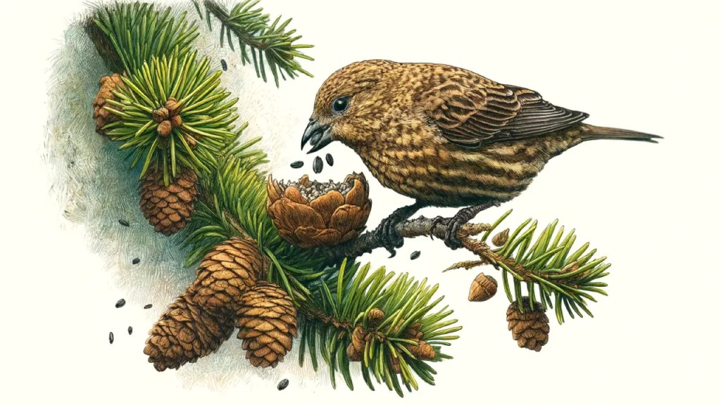 The diet of the Scottish Crossbill is intricately connected to the coniferous forests of Scotland, particularly the Scots pine, which provides the bulk of its sustenance. Let’s explore this bird’s specific dietary preferences and how its feeding behavior impacts the ecosystem.
