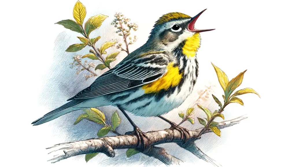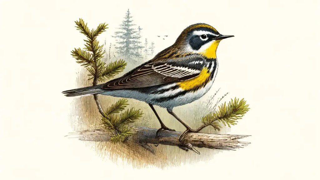 There are several geographically distinct forms of the Yellow-rumped Warbler, traditionally classified into two main groups: the “Myrtle” warbler of eastern North America, which has a white throat, and the “Audubon’s” warbler of the western regions, which sports a yellow throat. These variations are aesthetic, adapt the birds to different environments, and affect their behavior and breeding habits.