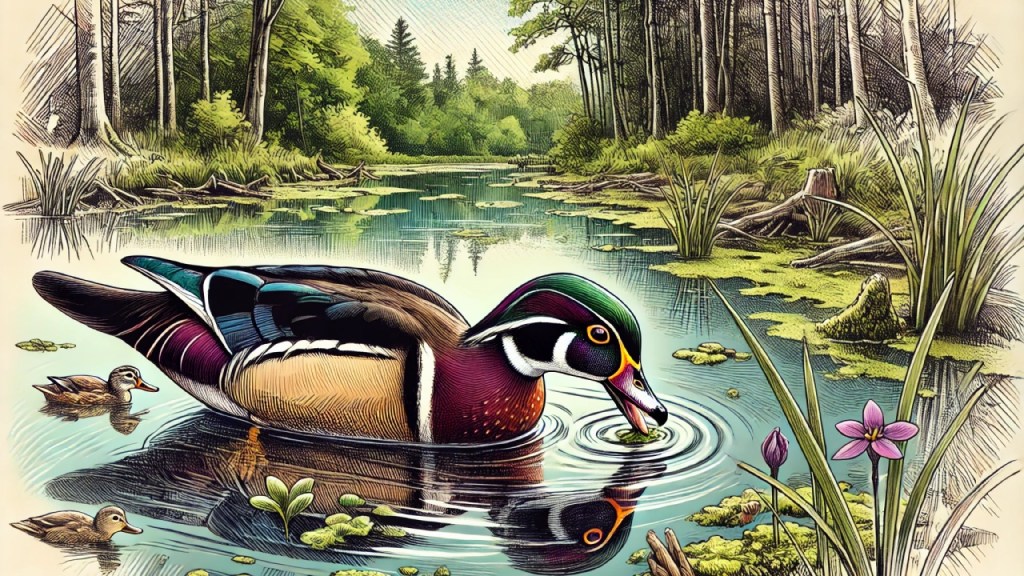 Wood Ducks have a varied diet that changes with the seasons and availability of food sources. They are omnivores, meaning they eat both plant and animal matter, which helps them thrive in diverse environments.