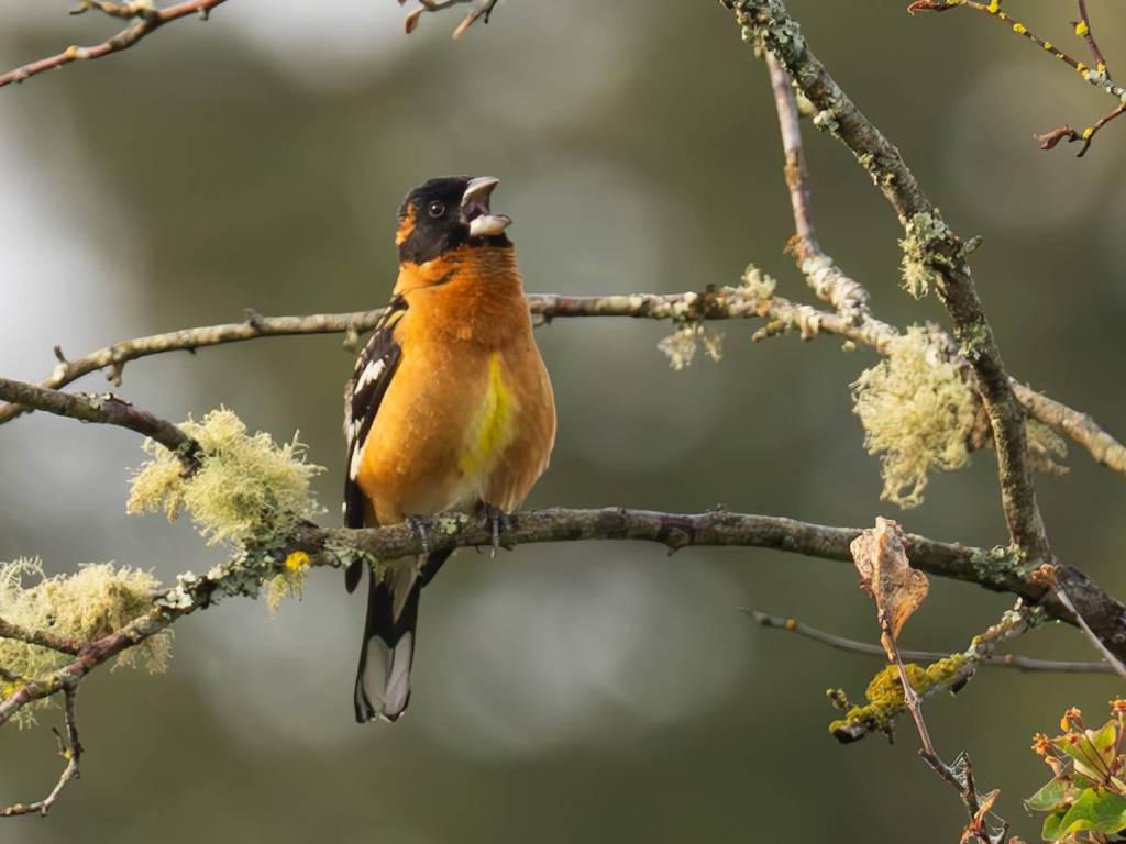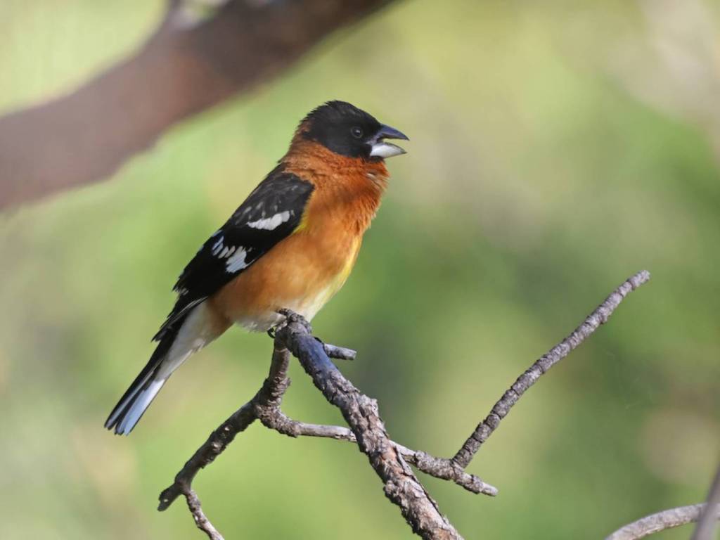 Black-headed Grosbeaks are known for their rich, melodious songs. Their songs are often compared to those of the American Robin but are more intricate and variable. Males sing to establish territory and attract mates, often repeating phrases in an improvisational style. You might hear them singing throughout the day during the breeding season.