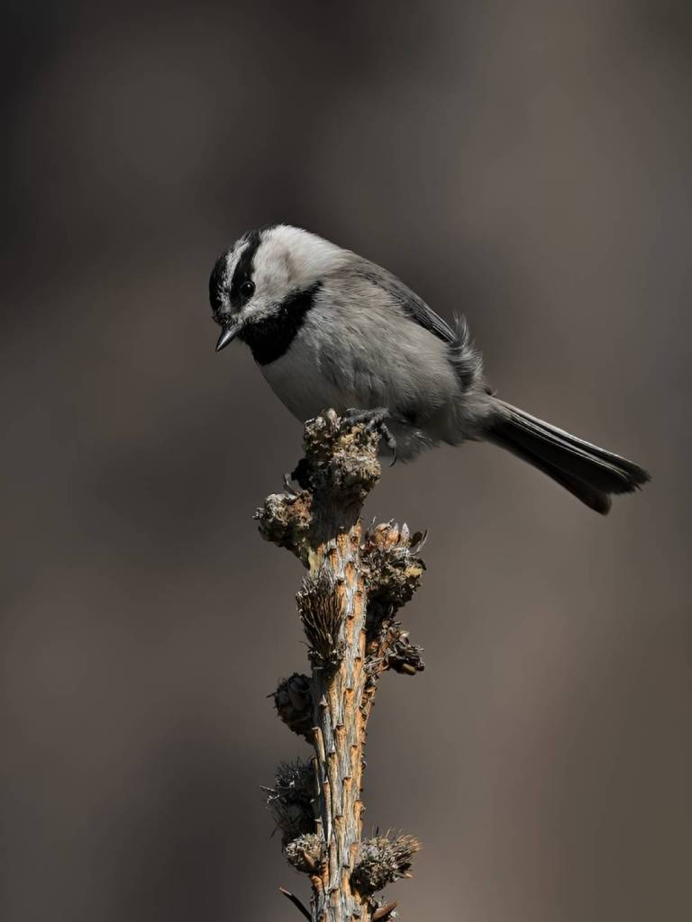 Mountain Chickadees are active and agile, often hanging upside down as they forage. Their sharp beaks help them pick insects from tree bark and crack open seeds. Their distinguishing features, especially the white eyebrow stripe, make them stand out in their high-altitude coniferous habitats. Compared to the Black-capped Chickadee, they have a raspier call and slightly darker backs.