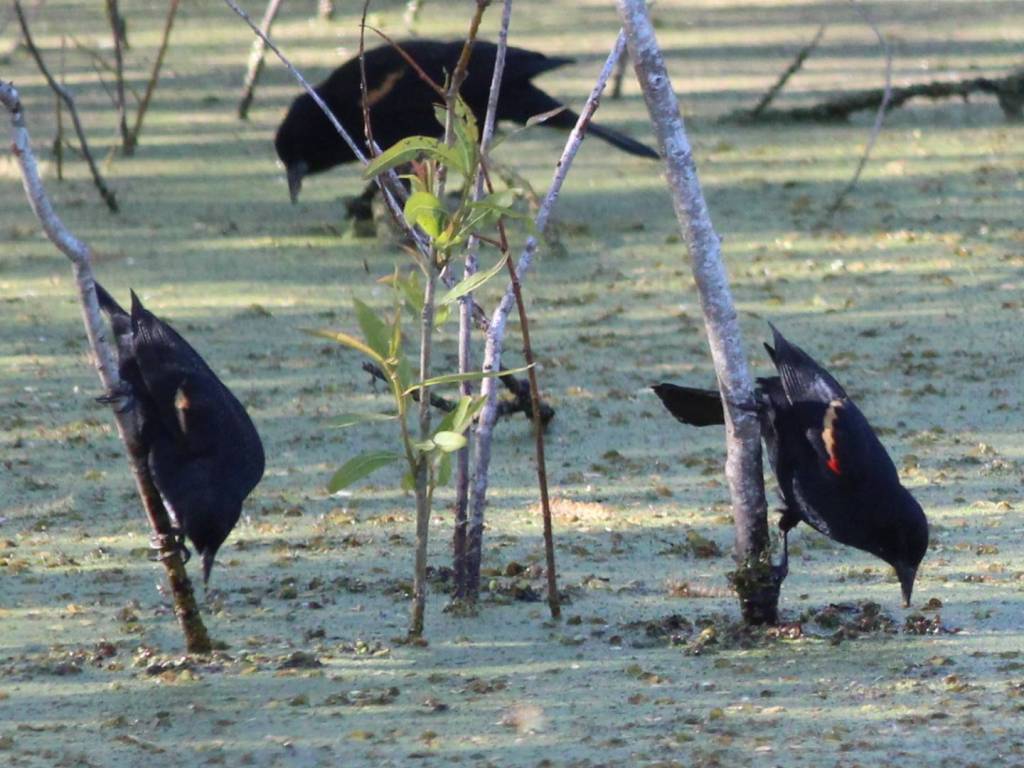 During the breeding season in spring and summer, Red-winged Blackbirds rely heavily on insects. Their diet includes beetles, dragonflies, grasshoppers, and even spiders. These protein-rich foods help them stay strong and provide essential nutrients for raising their young. You’ll often see them foraging on the ground, picking through grass or shallow water in search of small prey.