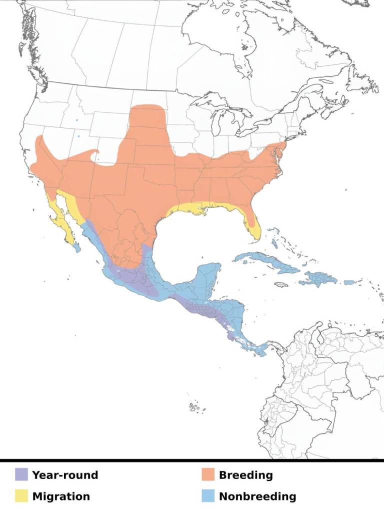 Their seasonal movements take them through the southern states and into Mexico and Central America, where they spend the winter. Some even migrate as far south as Panama. During migration, they’re not in a hurry—they travel in small flocks, resting and feeding along the way. Their journeys often follow river valleys and lowland routes that provide food and cover.