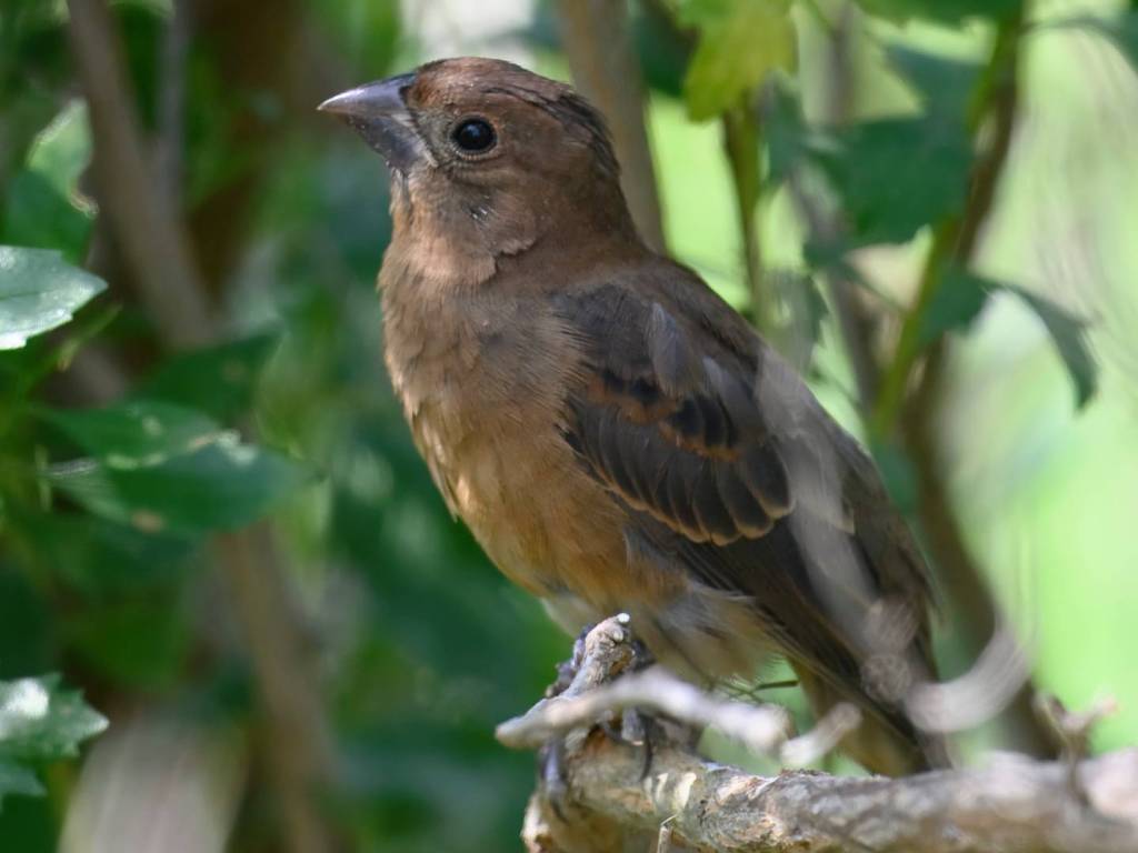 Now, the female Blue Grosbeak is a bit more subtle. She wears mostly warm brown tones with the faintest hints of blue, often around the wings or tail. Her wingbars are present but duller, and her bill is just as stout.