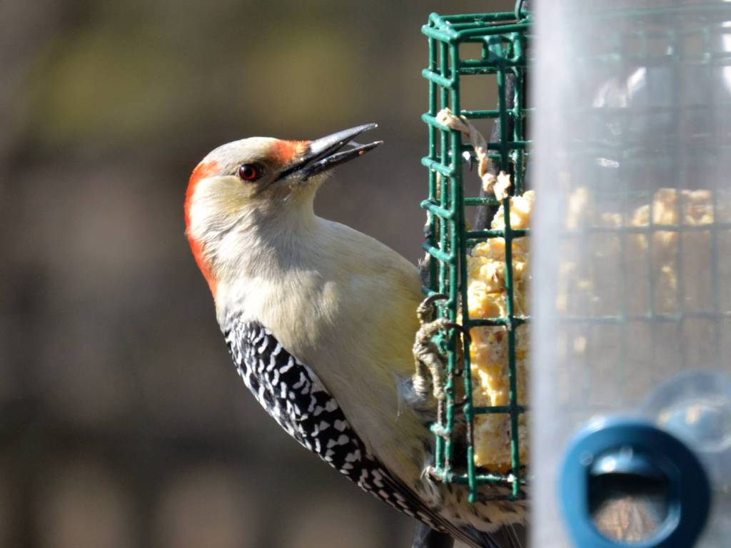 Red-bellied Woodpeckers aren’t shy about eating from unusual places either. They’ll visit hummingbird feeders to sip sugar water, and they’ve even gone after sap wells made by sapsuckers. They’re opportunistic and persistent.