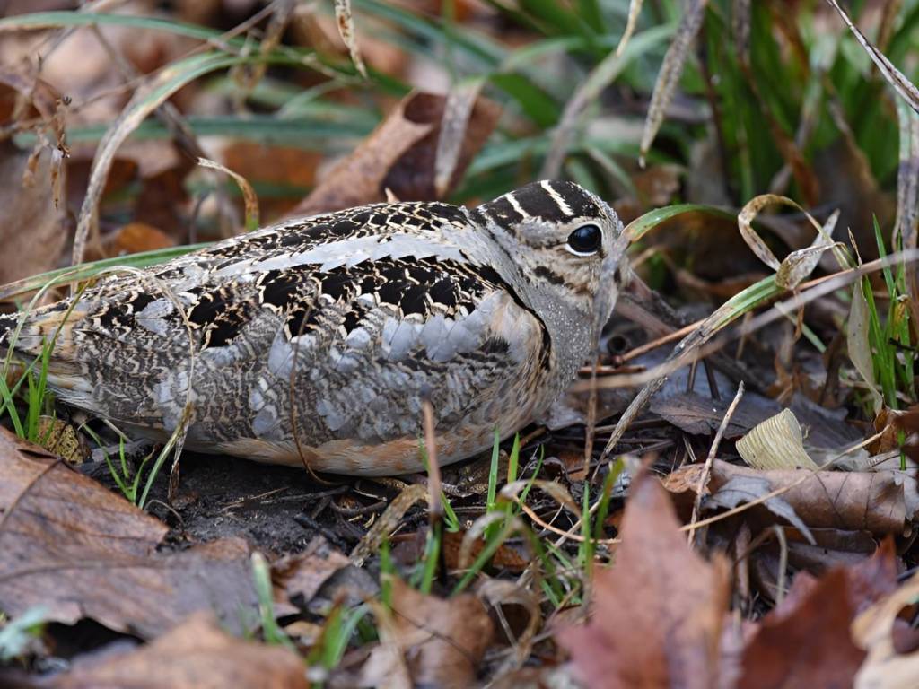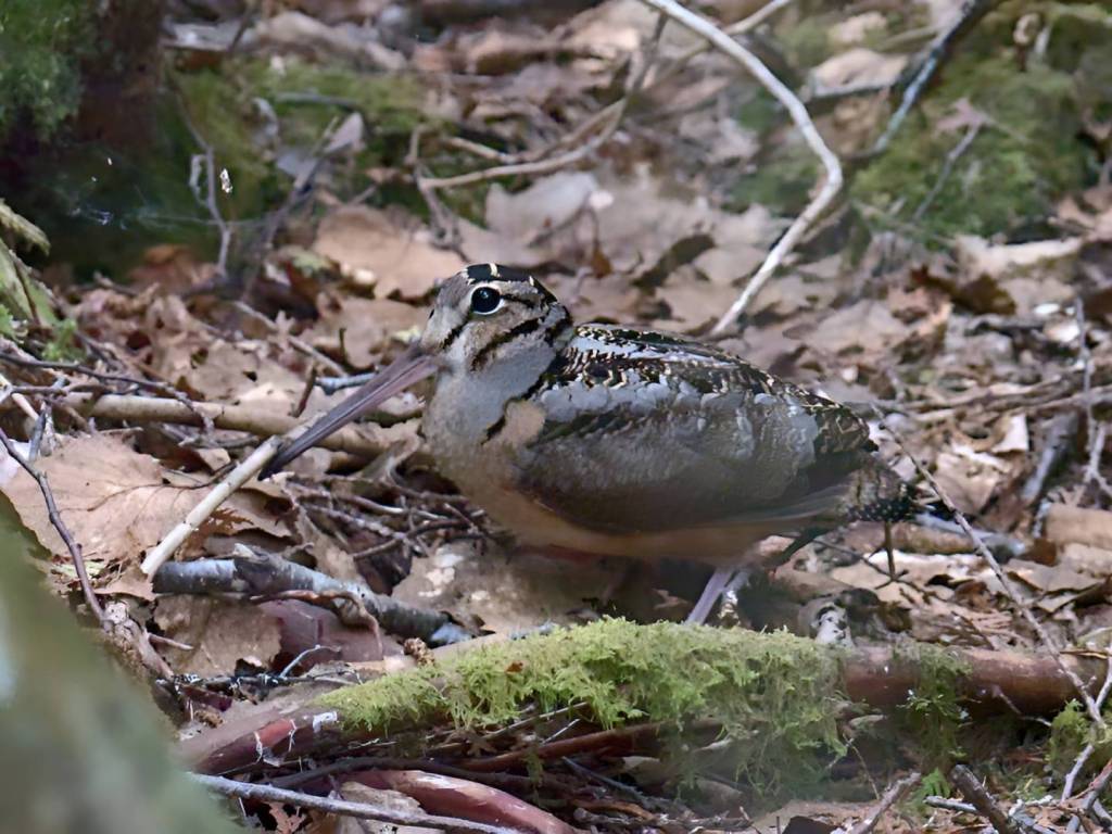 It is very similar to the Wilson’s Snipe, another member of the same family. Both birds have stocky bodies and probing bills, but the woodcock’s head looks almost cartoonish, with eyes so far back that it can watch for predators from nearly every angle. In the field, that eye placement matters: spotting just a round, dark eye peeking from leaf litter is often your first clue.