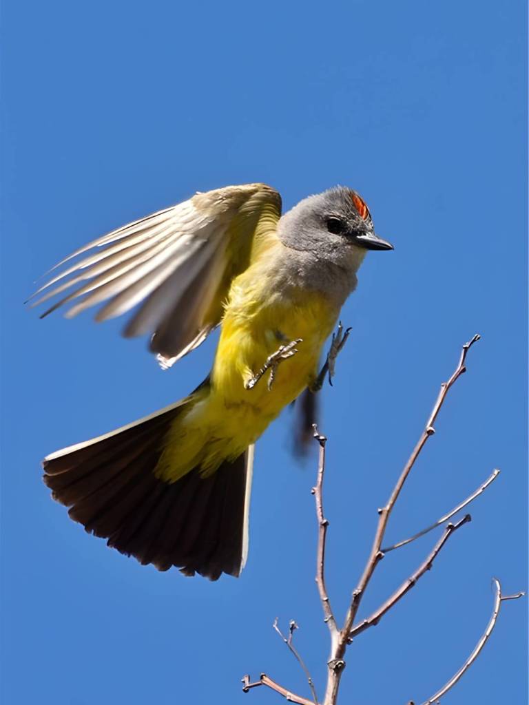 One feature that causes confusion is the small red or orange patch on the crown. This “red dot” is usually hidden by feathers and is not always visible. It may show briefly when the bird is agitated or during courtship, but you should not rely on it for identification. Behavior is often more reliable than color. Western Kingbirds sit upright, make short aerial sallies for insects, and frequently return to the same perch. These traits help separate them from similar species like the Eastern Kingbird or other flycatchers.