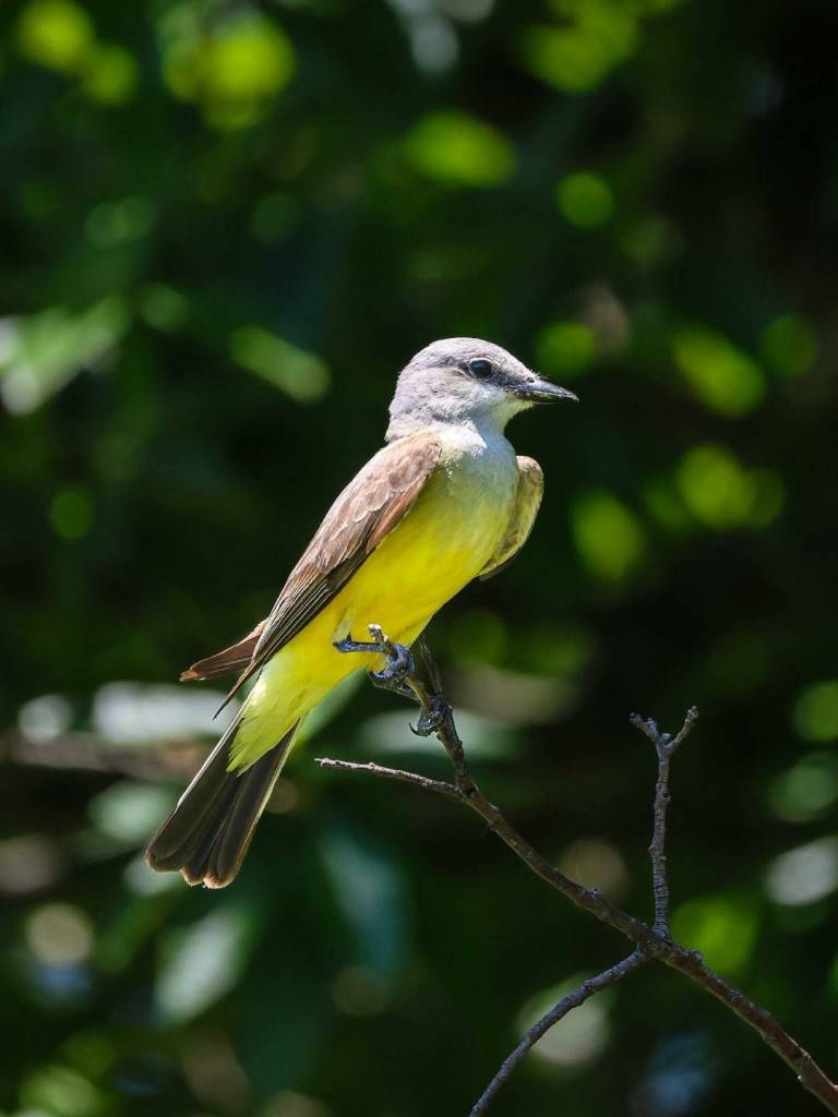 Identifying a Western Kingbird becomes straightforward once you focus on a few key features. They have a pale gray head and upperparts, a white throat and chest, and a bright yellow belly. The tail is black with distinct white outer edges, which are often visible in flight. The bill is fairly long and straight, typical of flycatchers.