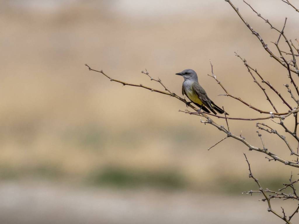 The Western Kingbird’s range covers much of western North America during the breeding season. They are widespread across the western United States, including California, Oregon, Colorado, and much of the Great Plains. You will most often find them in open areas with scattered trees or structures, such as grasslands, agricultural fields, desert scrub, and suburban edges. They favor places with exposed perches, which is why they are so commonly seen on utility lines and fence posts.