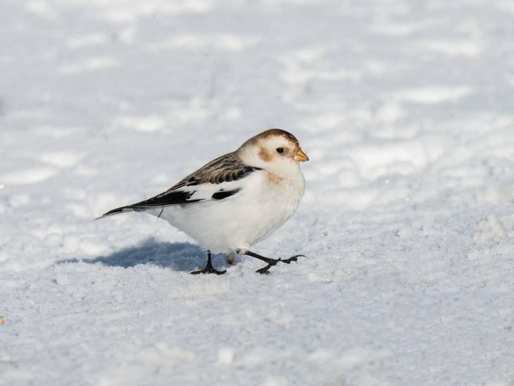 Snow Buntings can visit feeders, but only when conditions line up. They prefer open landscapes, ground feeding setups, and small seeds such as millet. Traditional hanging feeders rarely appeal to them.